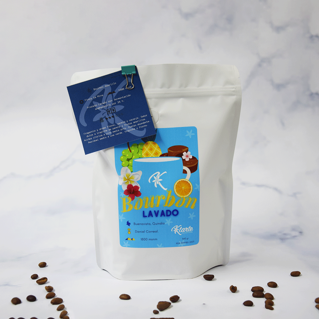 Café de edición especial, variedad bourbon. Proceso de lavado con fermentación anaheróbica por 24 horas. Altitud 1800msnm. El origen de este café que tiene un puntaje de 88, lo encontramos en La Finca La Mina, en Buenavista, Quindío. De la mano de su caficultor Daniel Correal.